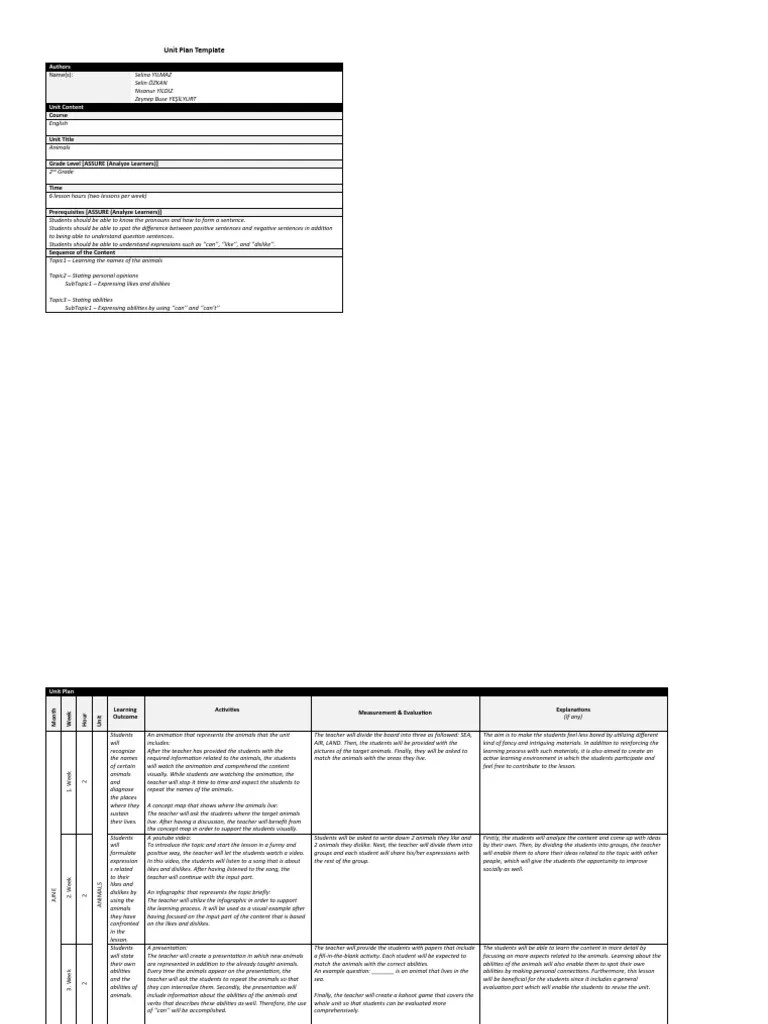 Unit Plan Template For Students, Teachers, And Tasks